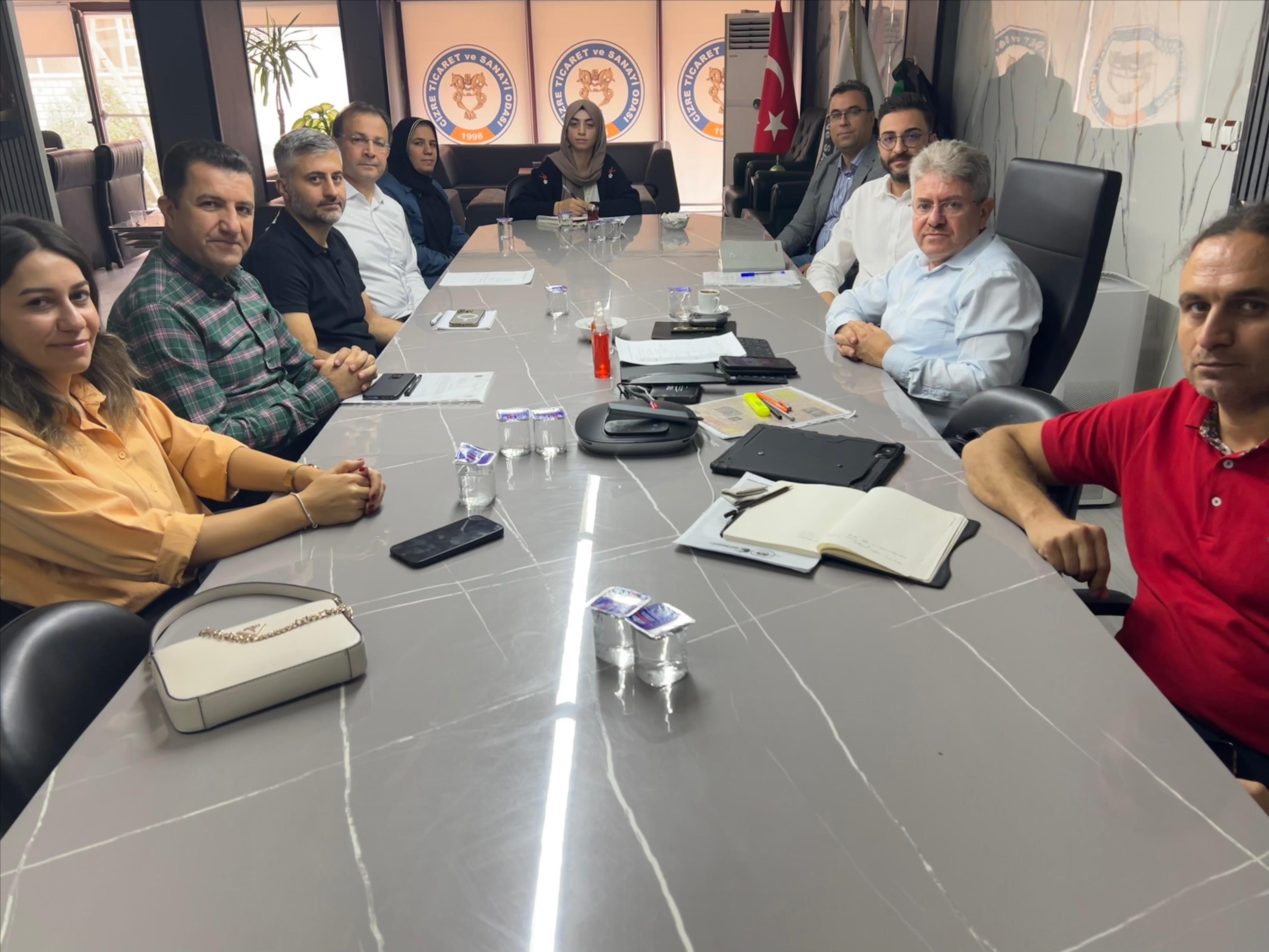 Türkiye Odalar ve Borsalar Birliği ile Meslek Yüksekokulları Eğitim İşbirliği protokolü kapsamında ilk toplantı Cizre Ticaret ve Sanayi Odası toplantı salonunda gerçekleştirildi. Toplantıya Cizre Ticaret ve sanayi odası başkanı Ö. Faruk YILDIRIM, Cizre Meslek Yüksekokulu Müdürü Doç. Dr. R. Vedat SÖNMEZ, oda temsilcileri ve meslek yüksekokulu temsilcileri katıldı. Toplantıda iki kurum arasında yapılacak işbirliği görüşüldü. 2025-2026 Akademik yılı faaliyet takvimi oluşturuldu. Eylül ayı içinde iş insanlarının Meslek yüksekokulu öğrencileri ile bir söyleşi yapılması karara bağlandı